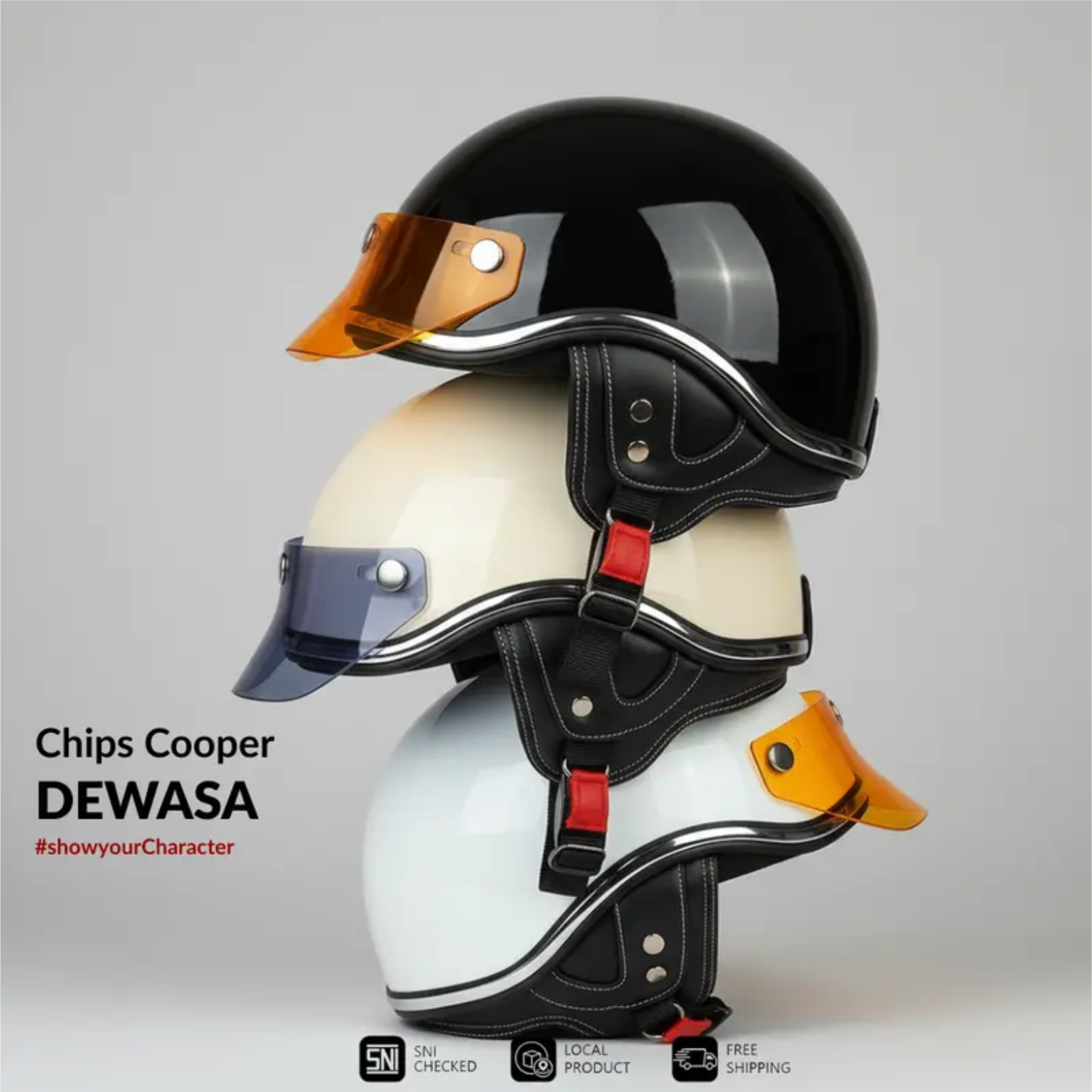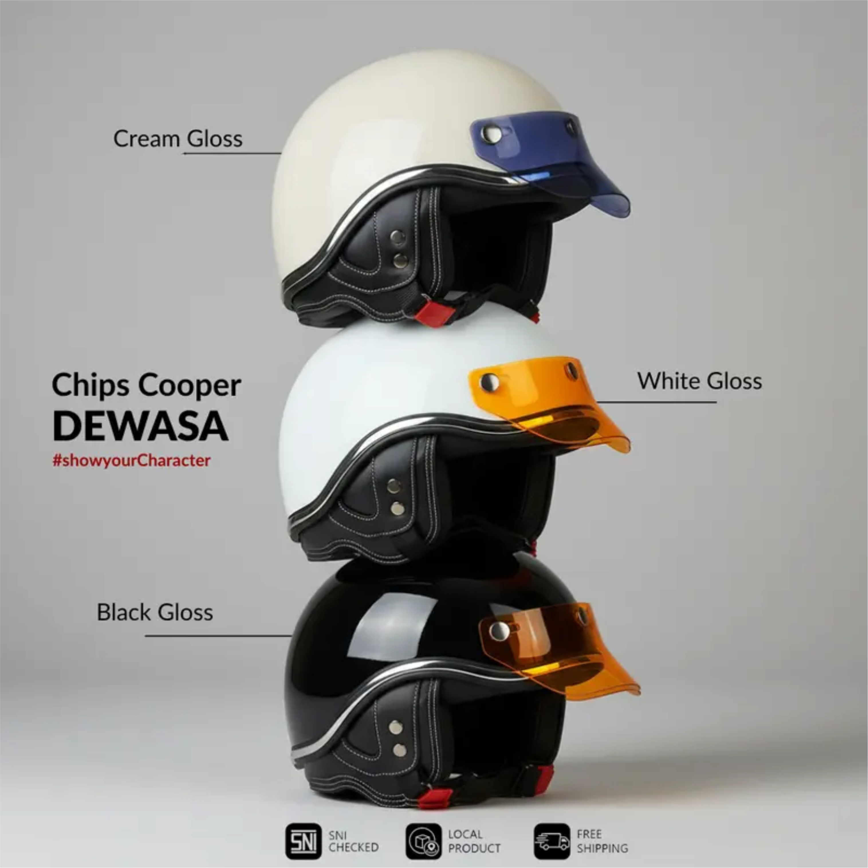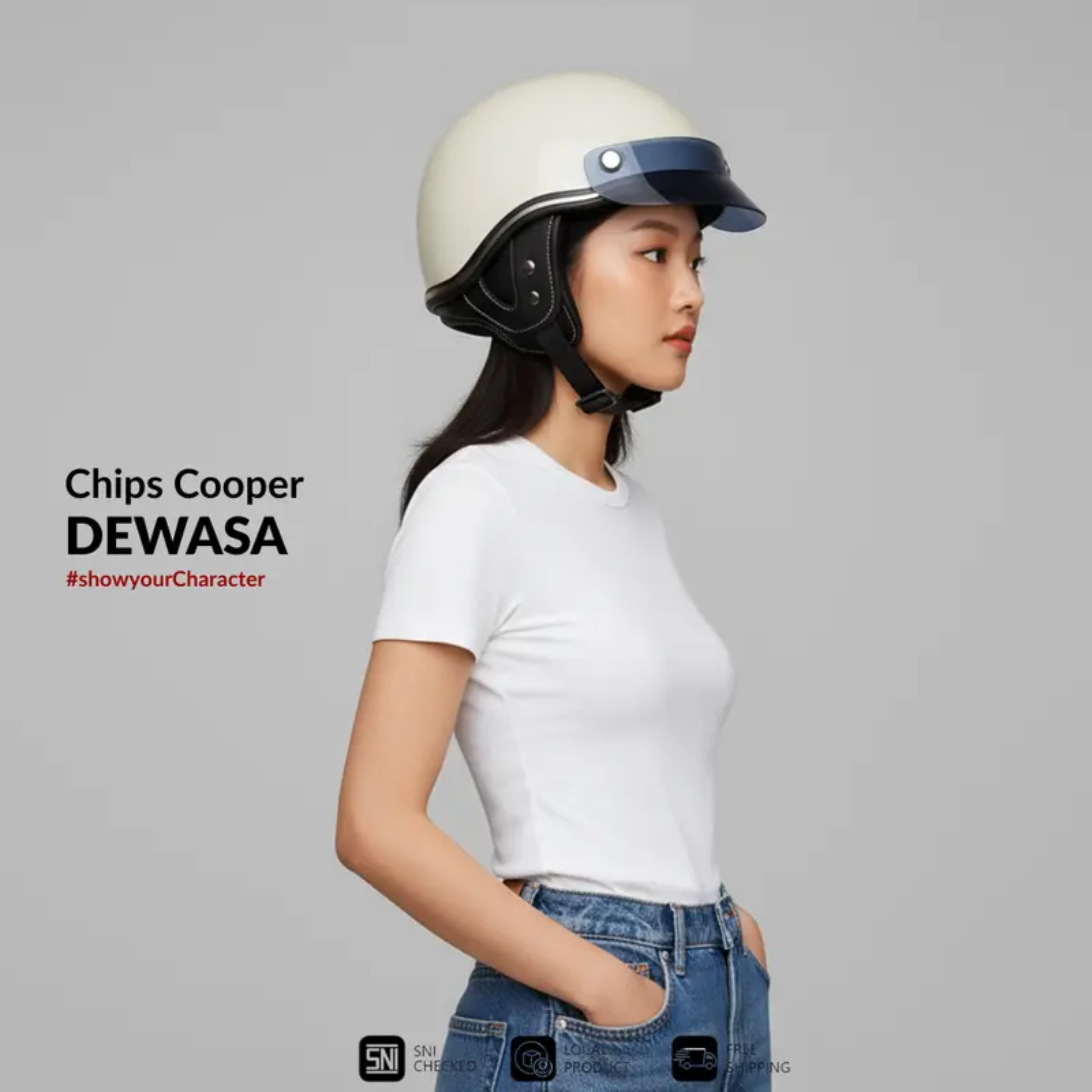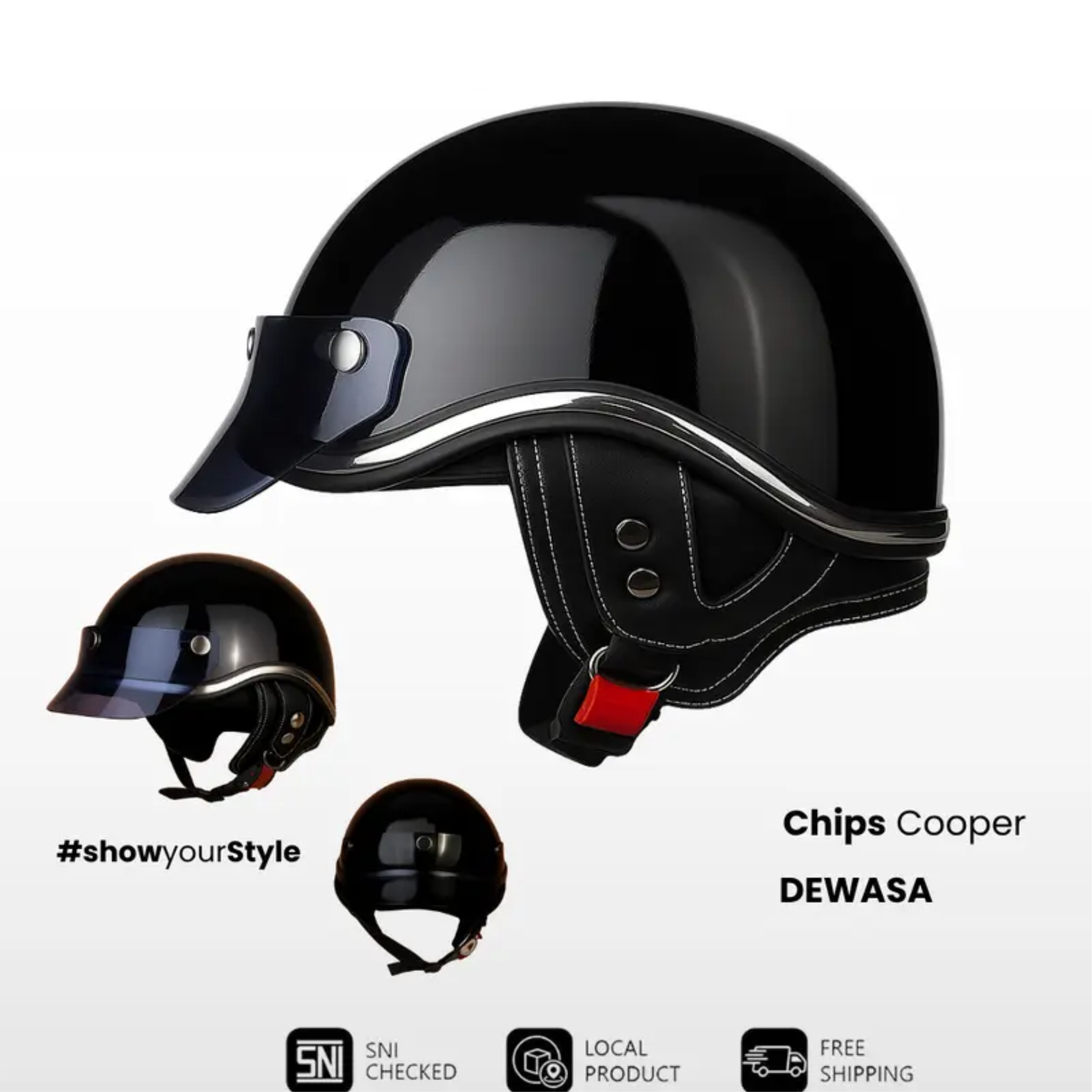 Helm Chip Cooper Original adalah pilihan sempurna untuk Anda yang mencari helm Vintage Classic yang ringan, low profile, dan nyaman.